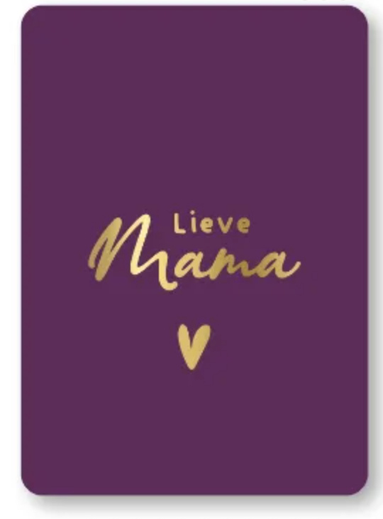 Kassaplan A6 Ansichtkaart "Lieve mama" | donkerpaarsWenskaart met vernieuwend design op stevig, slijtvast en helder wit karton voorzien van goudfolie.
