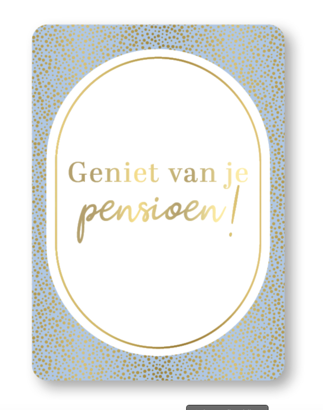 Kassaplan A6 Ansichtkaart "Geniet van je pensioen" | blauwWenskaart met vernieuwend design op stevig, slijtvast en helder wit karton voorzien van goudfolie.