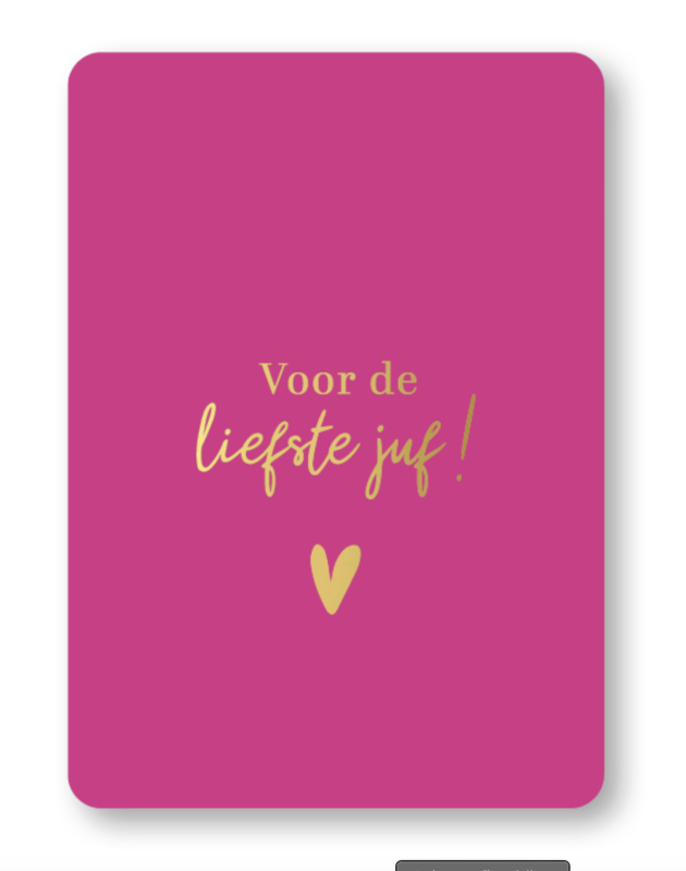 Kassaplan A6 Ansichtkaart "Voor de liefste juf" | MagentaWenskaart met vernieuwend design op stevig, slijtvast en helder wit karton voorzien van goudfolie.
