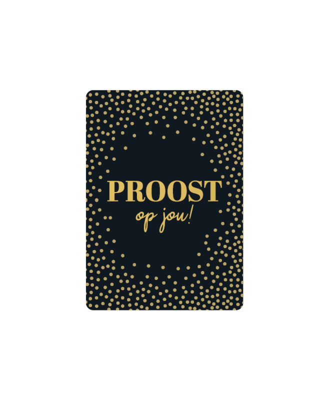 Kassaplan A7 Kaartje "Proost op jou"Wenskaartje met vernieuwend design op stevig, slijtvast en helder wit karton voorzien van goudfolie.