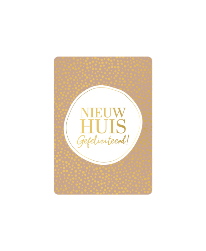 Kassaplan A7 Kaartje "Nieuw huis gefeliciteerd"Wenskaartje met vernieuwend design op stevig, slijtvast en helder wit karton voorzien van goudfolie.