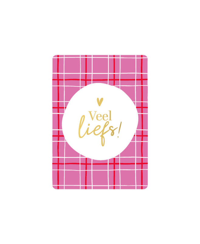 Kassaplan A7 Kaartje "Veel liefs"Wenskaartje met vernieuwend design op stevig, slijtvast en helder wit karton voorzien van goudfolie.