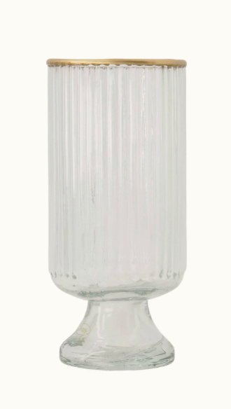 Deze mooie tafelvaas combineert transparant glas met een gouden rand voor een elegante uitstraling.