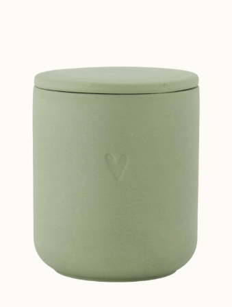 Zusss Geurkaars keramiek "hartje" | groenDe Zusss geurkaars keramiek brengt met haar zachte groene kleur een warme sfeer in huis.