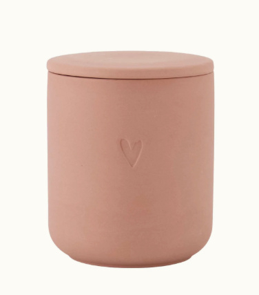 Deze donkerroze kaars in een mooi mat keramieken potje heeft een subtiel hartje gegraveerd, wat het extra liefdevol maakt.