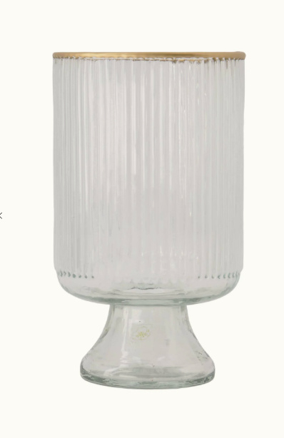 Zusss Tafelvaas op voet "ribbel" M | glasDe Zusss tafelvaas met ribbelglas is een prachtige aanvulling voor jouw interieur. Deze tafelvaas van transparant glas met een gouden rand straalt elegantie uit. De ribbels geven het glas een unieke structuur, perfect voor bloemen…