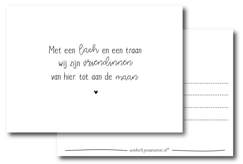 Winkeltje van Anne A6 kaart "Vriendinnen tot aan de maan"Met een lach en een traan, wij zijn vriendinnen van hier tot aan de maan