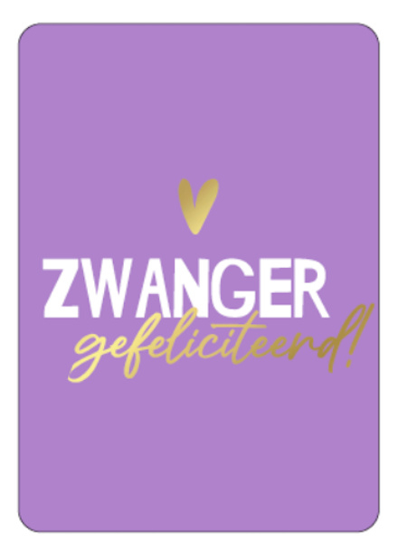 Kassaplan A6 Ansichtkaart "Zwanger gefeliciteerd"Wenskaart met vernieuwend design op stevig, slijtvast en helder wit karton voorzien van goudfolie.