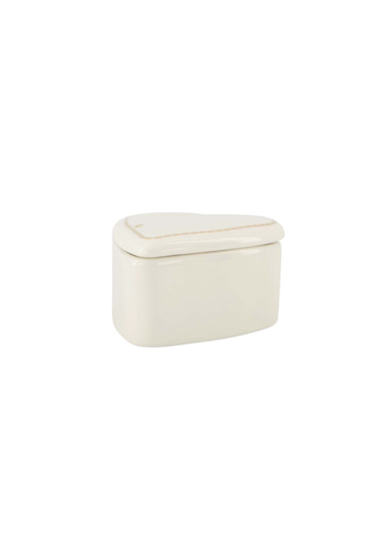 Zusss - potje keramiek met deksel hartje | wit/goudDit keramieken potje van Zusss is handig en ziet er ook nog eens leuk uit! Zet 'm bijvoorbeeld in je keuken om theezakjes in op te bergen. Dit item is gemaakt van aardewerk en heeft een formaat van 8x8x3,5cm. Je combineert deze…