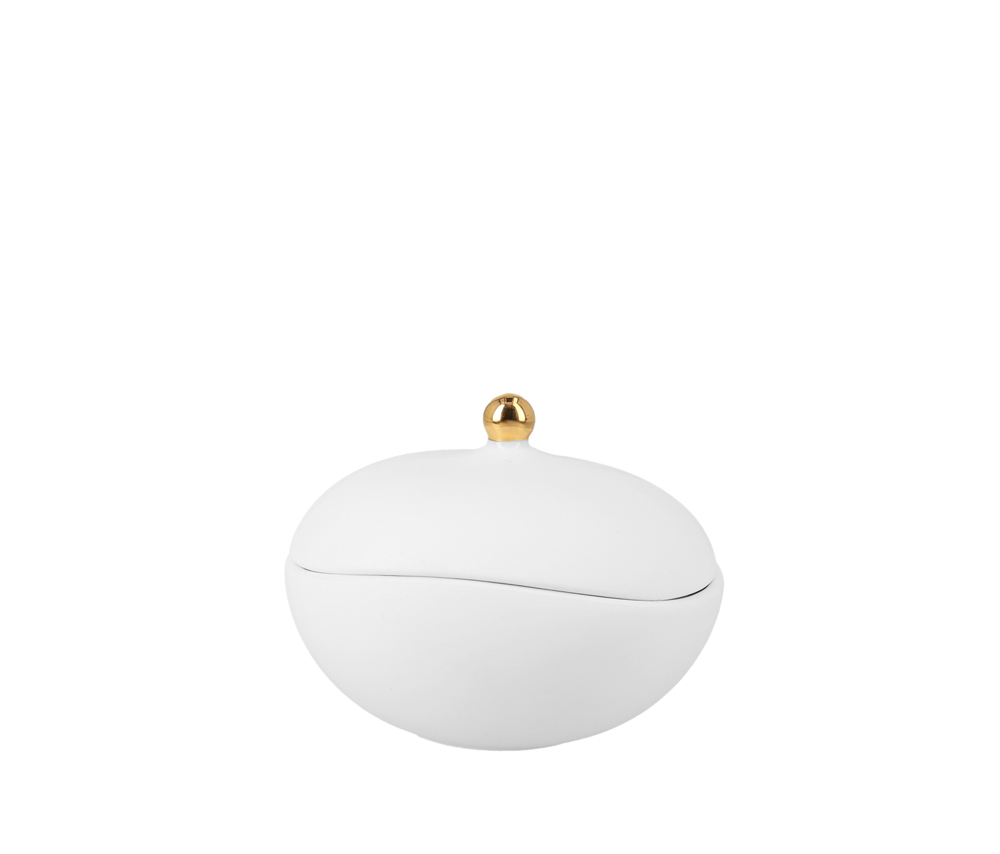 Met gouden decal op het deksel en aan de binnenkant van schaal het schaaltje.