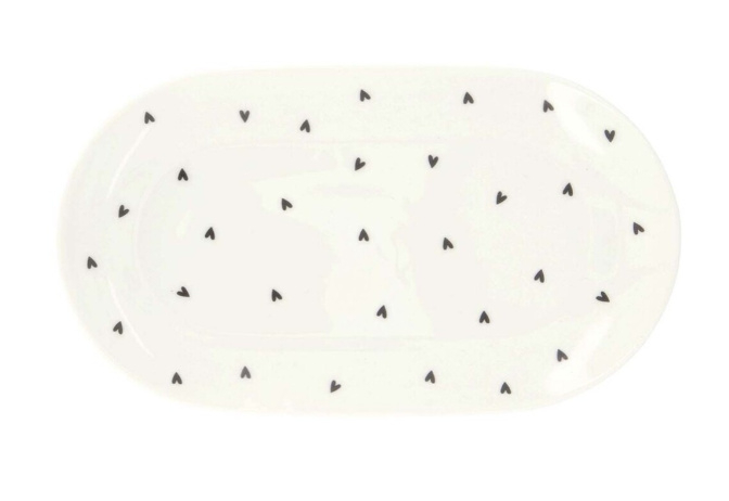 Zusss Serveerschaal "Hartjes" | Wit antracietgrijsZUSS | SERVEERSCHAAL HARTJES ANTRACIETEen warmer welkom kunnen je gasten niet krijgen. Leuk schaaltje om de lekkerste bonbons of taart op te serveren. Op serveerschaaltje staan antracietgrijze hartjes. De afmeting is 20 x 11,5 cm.…